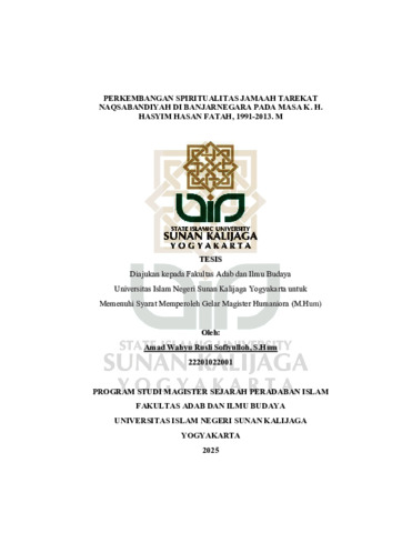 Amad Wahyu Rusli Sofiyulloh, NIM.: 22201022001 (2025) PERKEMBANGAN SPIRITUALITAS JAMAAH TAREKAT NAQSABANDIYAH DI BANJARNEGARA PADA MASA K. H. HASYIM HASAN FATAH, 1991-2013. M. Masters thesis, UIN SUNAN KALIJAGA YOGYAKARTA.
