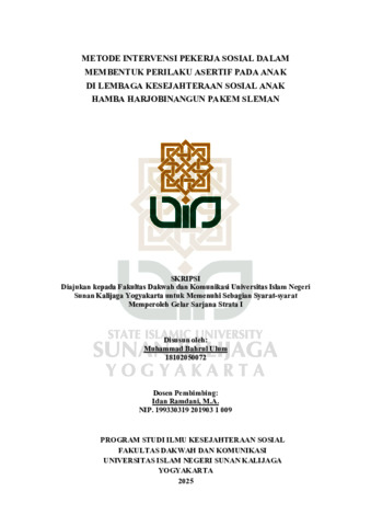 Text (METODE INTERVENSI PEKERJA SOSIAL DALAM MEMBENTUK PERILAKU ASERTIF PADA ANAK DI LEMBAGA KESEJAHTERAAN SOSIAL ANAK HAMBA HARJOBINANGUN PAKEM SLEMAN)