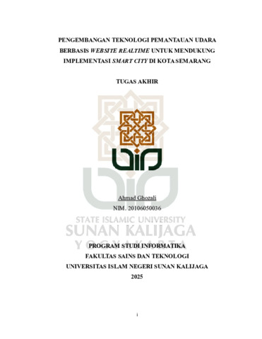Ahmad Ghozali, NIM.: 20106050036 (2025) PENGEMBANGAN TEKNOLOGI PEMANTAUAN UDARA BERBASIS WEBSITE REALTIME UNTUK MENDUKUNG IMPLEMENTASI SMART CITY DI KOTA SEMARANG. Skripsi thesis, UIN SUNAN KALIJAGA YOGYAKARTA.