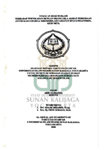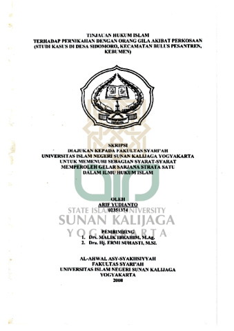 Perkawinan dengan orang gila akibat perkosaan merupakan salah satu bentuk perkawinan yang pernah terjadi di Desa Sidomoro, Kecamatan Bulus Pesantren, Kabupaten Kebumen. Perkawinan ini adalah suatu perkawinan antara seorang laki-laki dengan seorang gadis gila yang telah diperkosanya. Perkawinan ini merupakan solusi yang dihasilkan dari musyawarah tokoh agama dan tokoh agama setempat dalam menanggapi tuntutan keluarga korban terhadap pelaku perkosaan. Dalam penelitian ini, penyusun mencoba mengkaji bagaimana status perkawinan orang normal dengan orang gila, dasar-dasar pertimbangan hukum yang digunakan oleh tokoh agama dan tokoh masyarakat atas kebolehannya dalam menikahkan antara pelaku serta melihat bagaimana dasar pertimbangan hukum tersebut menurut hukum perkawinan dalam Islam. Adapun pendekatan yang digunakan penyusun dalam menjawab permasalahan di atas ialah pendekatan normative. Pendekatan normative ini digunakan untuk melacak apakah perkawinan dengan orang gila akibat perkosaan cenderung dibolehkan atau merupakan suatu larangan dalam Islam berdasarkan teks-teks al-Qur'an, al-Hadis, pendapat ulama dan kaidah-kaidah us}ul fiqh. Dalam hal ini penyusun menggunakan Maqasid asy-Syari'ah serta menggunakan kaidah usul fiqh: Sifat penelitian dalam skripsi ini adalah deskriptif analitik, yaitu penelitian yang menggambarkan dan menganalisis data tentang perkawinan dengan orang gila di Desa Sidomoro, Kecamatan Bulus Pesantren, Kabupaten Kebumen menurut hukum perkawinan dalam Islam. Sedangkan data penyusun dapatkan melalui interview, dokumentasi dan observasi di lapangan. Dari penelitian tersebut, penyusun memperoleh hasil bahwa: Agama Islam secara eksplisit tidak pernah mengharuskan akil dan balig sebagai salah satu syarat ataupun rukun nikah. Islam hanya mengemukakan bahwa karena pentingnya lembaga perkawinan itu, maka secara implisit terkandung suatu anjuran supaya siapa saja yang memasuki kehidupan rumah tangga hendaknya memiliki kematangan, baik fisik maupun mental. Inilah yang menjadi jawaban mengenai bagaimana status perkawinan antara orang normal dengan orang gila. Hasil kedua yang penyusun peroleh adalah dasar pertimbangan hukum yang digunakan oleh tokoh agama dan tokoh masyarakat Pertama, mengingat hasil dari perkosaan, yaitu anak dalam kandungan hingga dilahirkan membutuhkan pertanggungjawaban kasih sayang maupun nafkah seorang ayah. Kedua, diharapkan dengan perkawinan korban perkosaan akan sembuh dari gilanya. Ketiga, perkawinan dengan orang gila juga merupakan lembaga preventif bagi terjadinya perkosaan yang sama kepada korban korban-korban lainnya. Adanya pertimbangan hukum tersebut, maka dalam penelitian ini penyusun dapat memberikan suatu kesimpulan bahwa perkawinan dengan orang gila akibat perkosaan di Desa Sidomoro, Kecamatan Bulus Pesantren, Kabupaten Kebumen, hukumnya boleh karena perkawinan tersebut telah mempertimbangkan kemaslahatan.