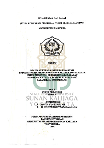 Cecep Mulsadad, NIM.: 02361676 (2008) RELASI PAJAK DAN ZAKAT (STUDI KOMPARASI PEMIKIRAN YUSUF AL-QARADAWI DAN MASDAR FARID MAS'UDI). Skripsi thesis, UIN SUNAN KALIJAGA YOGYAKARTA.